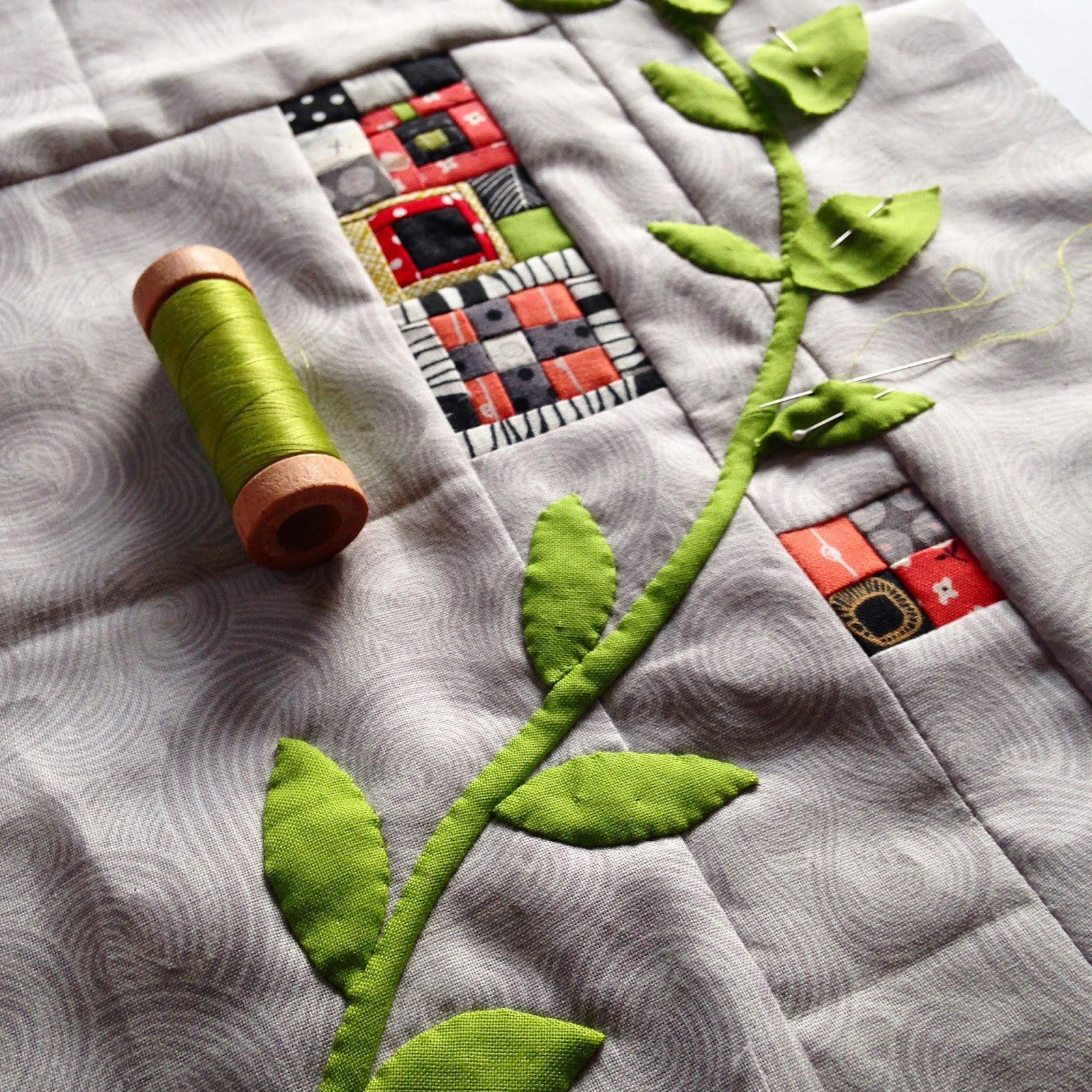I have a real obsession with needle-turn applique at the moment, especially with trailing stems of leaves (like I used on this recent wall hanging).