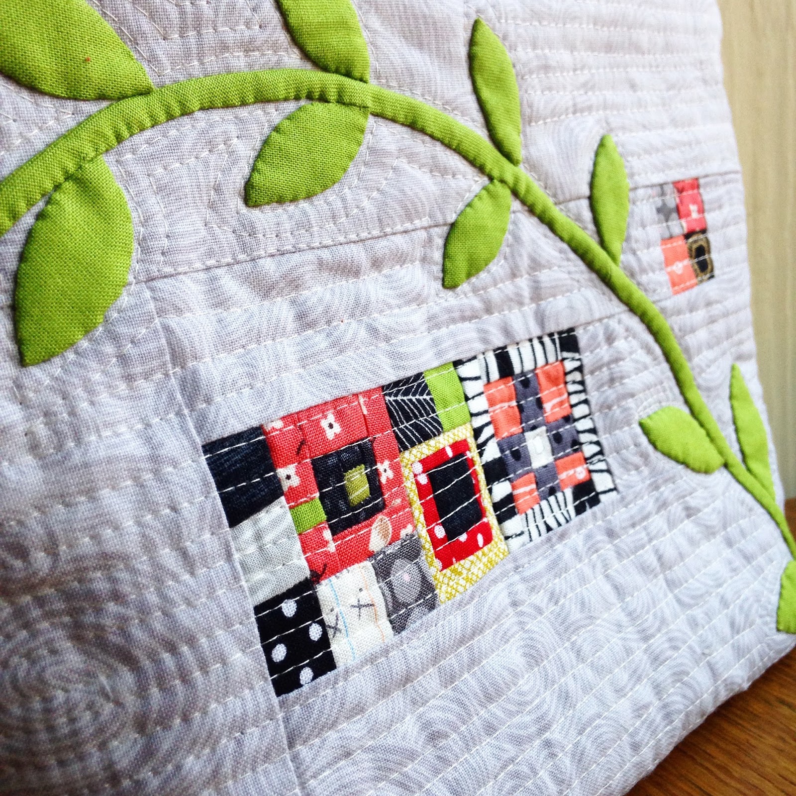 Hi Jo! This mini is really beautiful but in fell in love with your pouch! What a awesome design! Appliqued leaves gives so much depth to the quilted piece! Perfect colours, too! x Teje
