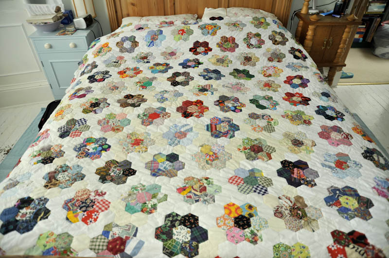 What a wonderful wonderful idea to make a hex kit for someone to while away the time while convalescing – it's not the first time I've heard of quilting being used as some sort of "therapy: – Cherri House has been talking about it this week as having helped her get over an abusive marriage. And I love the fact that your quilt is actually used every day on your bed rather than stuffed in a cupboard somewhere.