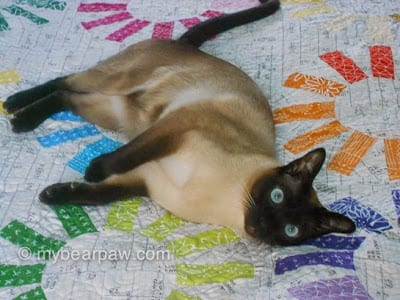Of course as soon as I put a quilt down to photograph it Hector jumps up to have a roll around!