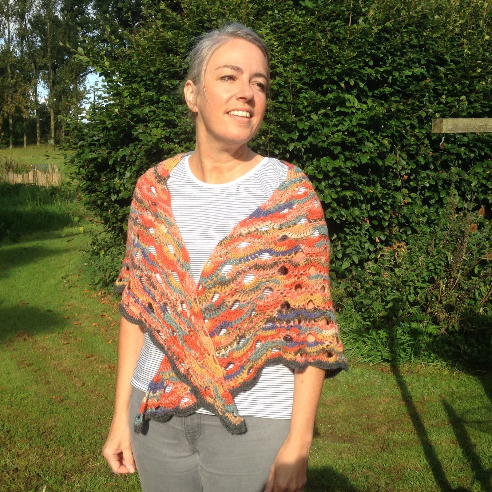 Here I am modelling the finished shawl.