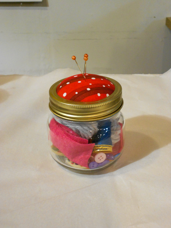 The larger jar also has fabric and a pack of needles. Unfortunately these won’t be available to my online customers (glass is too hard to mail order), but for all my local peeps the larger is £8.99 and the smaller £4.99. I also sell the kilner jars if you fancy making your own!