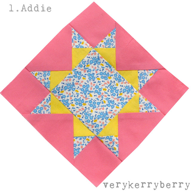 And lastly Addie (1). I just wasn’t really paying attention when I made this and have basically created a totally different block! I have ‘borrowed’ a photo of the correct placement from Kerry’s blog so you can see what went wrong…