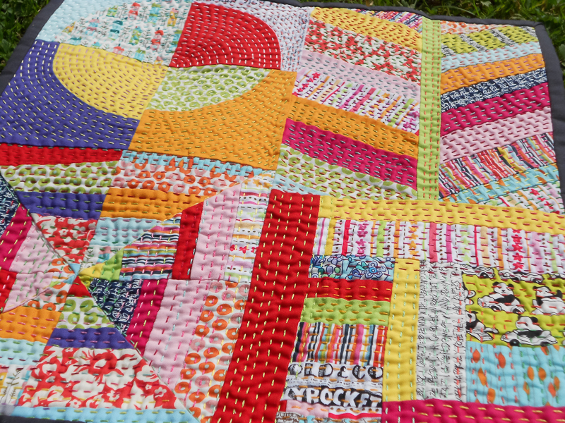 Fabulous! Love all the hand quilting and the improv blocks are so bright and cheerful. Reminds me of one of Mary's quilts on Molly Flanders blog.