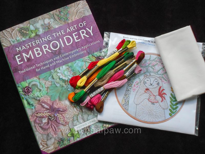 The embroidery book looks like it is a wonderful book to look through over and over again. I like all the bright colorful pictures.