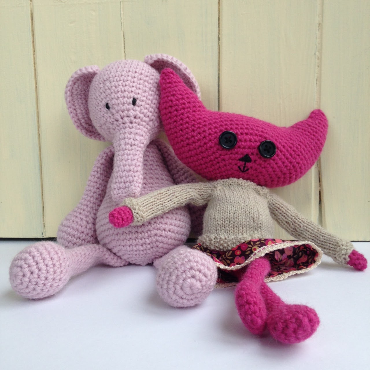 These cute little amigurumi critters below were made by my colleague Jane Wilson (who is taking over teaching some of my classes now). Jane will be showing you how to use simple double crochet to create adorable little friends. She designed that cat herself, look at that cute outfit!