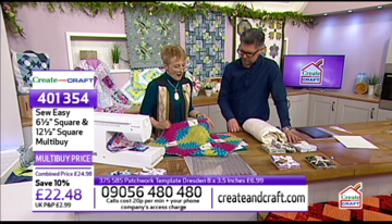 My project is also part of a series showing on Create and Craft TV and hosted by traditional quilting star Jennie Rayment (who I coincidentally met, very briefly at the Show I was exhibiting at in Glasgow last weekend – and she seemed as lovely IRL as she does on TV!). Jennie demonstrates the pattern while making her own version. You can also buy the rulers, and just about everything else in the studio!