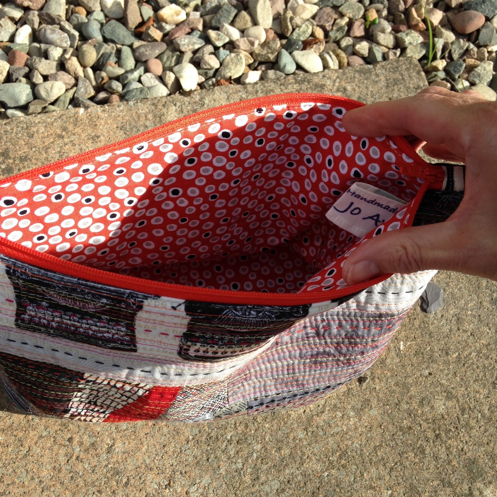 This is something I have been doing more and more, every time I finish a quilt I run up a couple of panels with the scraps, matchstick and hand quilt them, and then make one of these large pouches. I have decided to call them Project Pouches as they are big enough to carry your current craft project in (as long as you are not hand quilting a whole quilt!). They measure 8 x 12in.