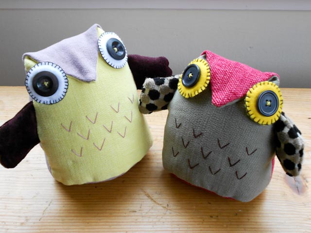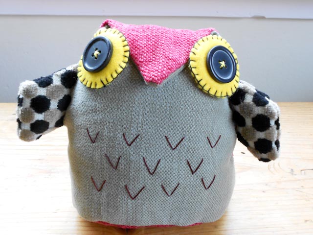 The fabrics are beautifully soft so they are perfect for a cuddly owl. I love fly stitching so much that I added some to their tummies as feathers. This was the trial one, but I thought he was a bit squat so I decided to stretch the pattern a bit for the next one.