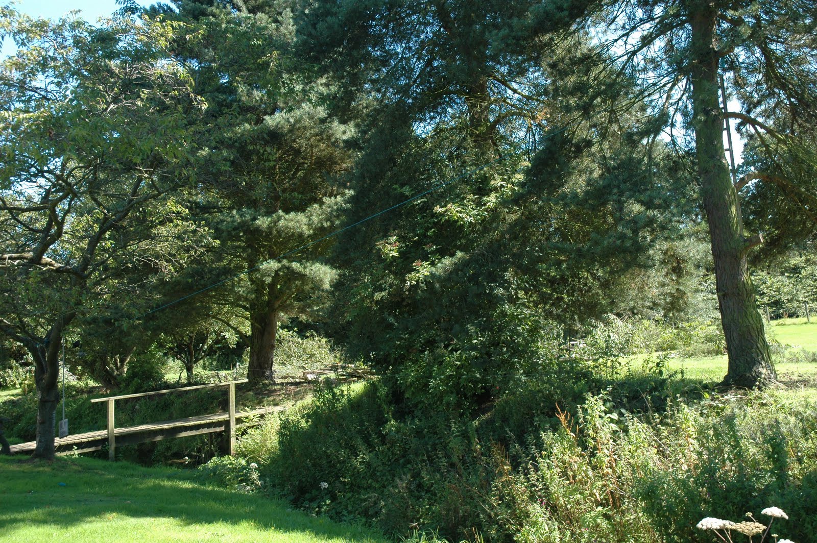 Now I am going to walk over this little wooden bridge and into the ‘back lawn’ area which leads to the field.
