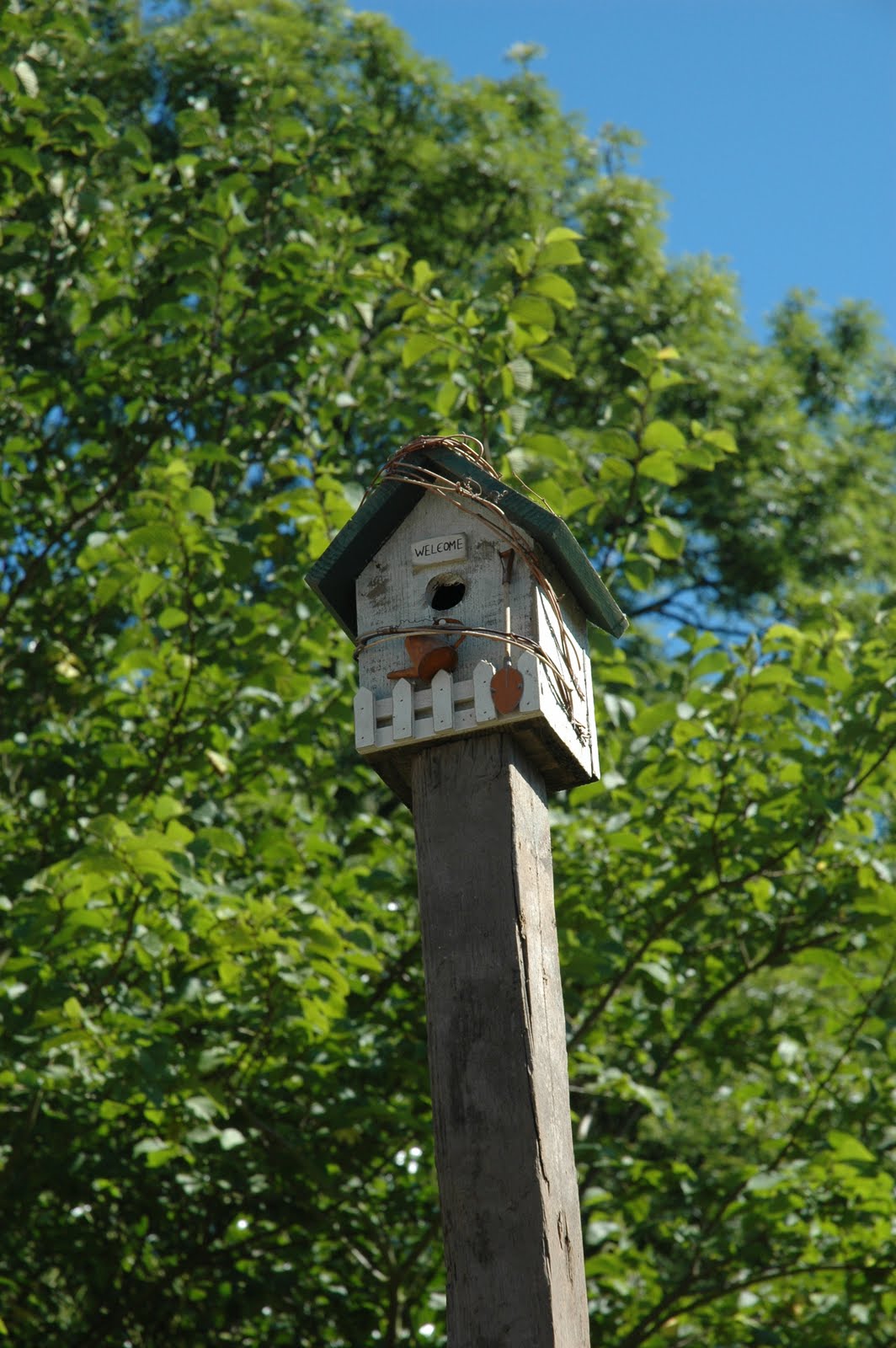 This cute little birdhouse that I have had on a shelf in the kitchen for years (not really very helpful for the birds!). This is so high up that maybe we will get a little family to move in next spring.
